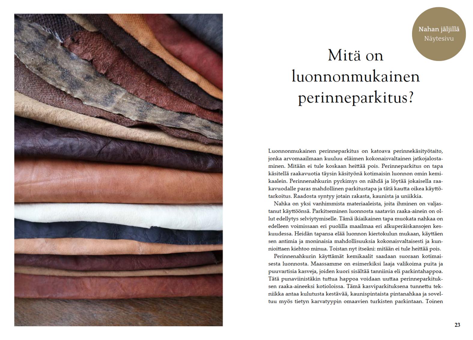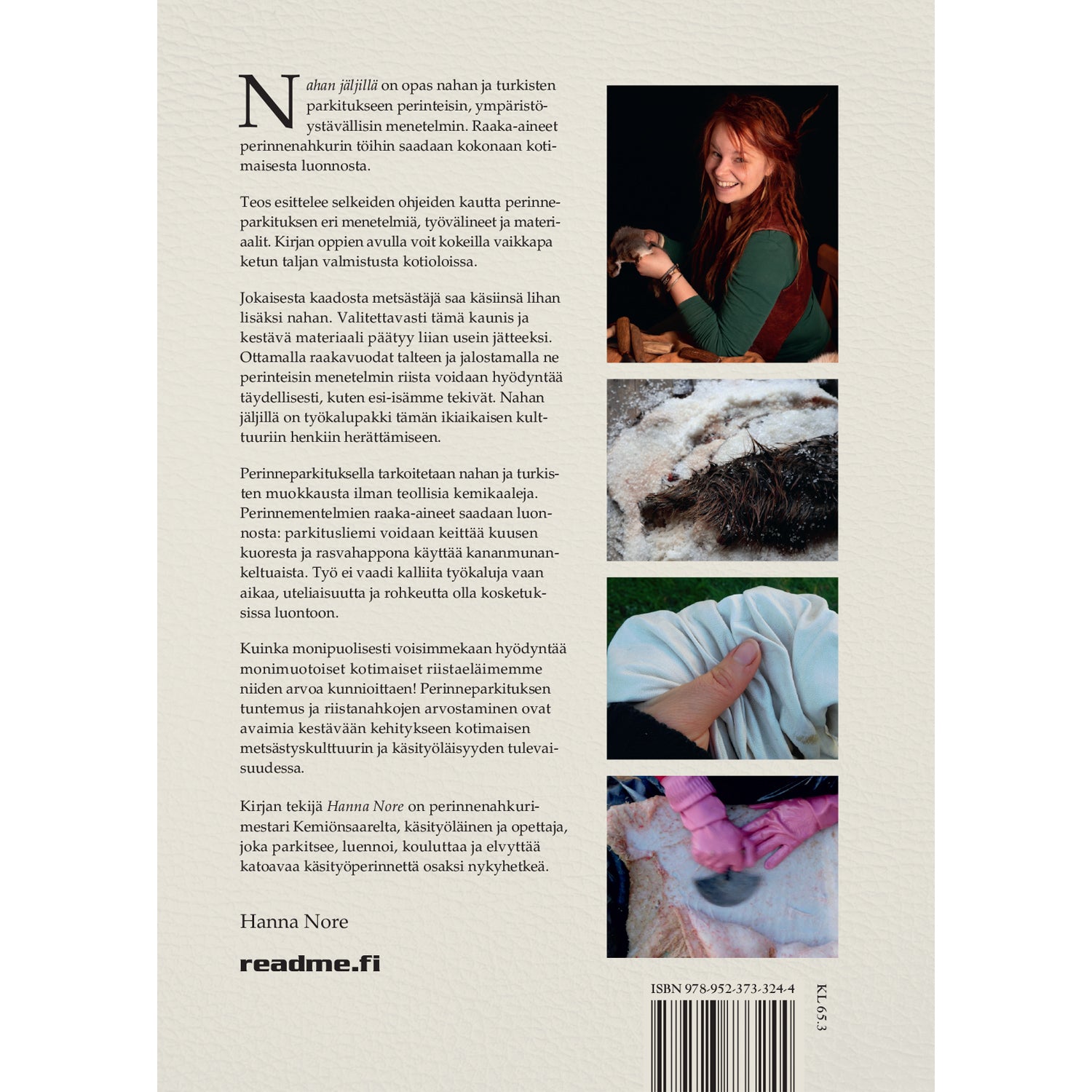 Nahan jäljillä on opas nahan ja turkisten parkitukseen perinteisin, ympäristöystävällisin menetelmin. Raaka-aineet perinnenahkurin töihin saadaan kokonaan kotimaisesta luonnosta.
