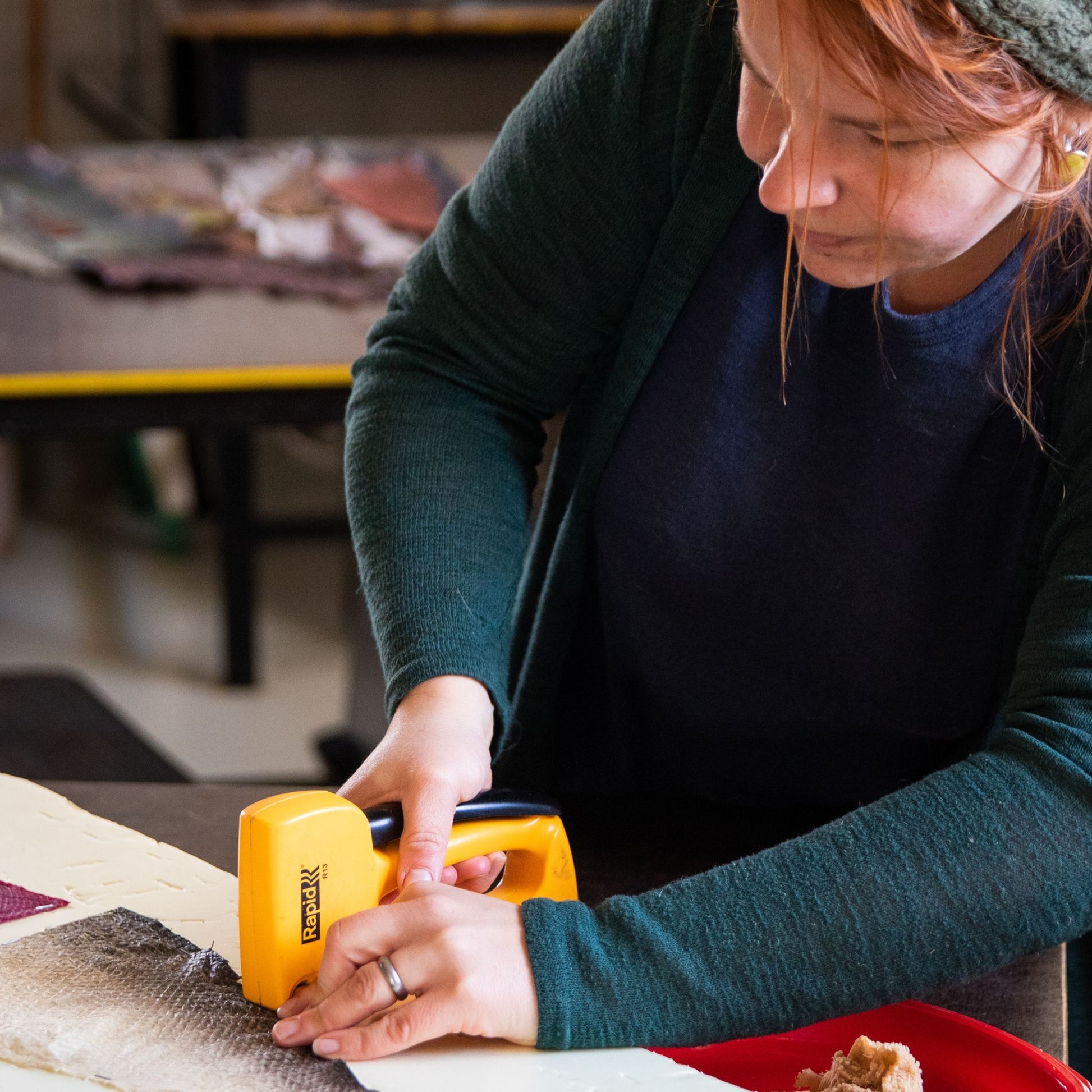 Hanna Nore valmistaa kurssilla norjanlohesta rasvaparkkitekniikalla valkeaa pintanahkaa. Kurssiluentojen aikana suosittelemme seuraamaan opetusta ja tarttumaan toimeen vasta luennon päätyttyä.